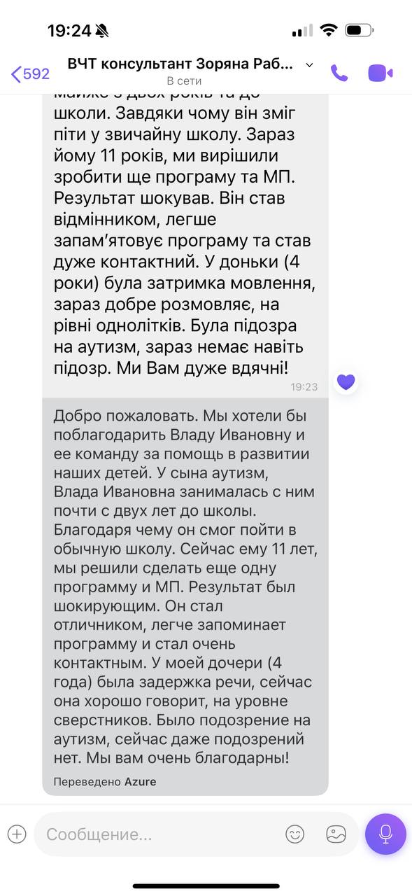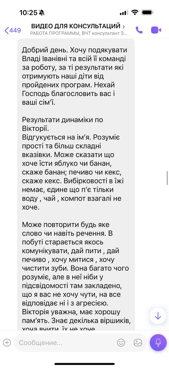 Влада, мы просто счастливы, что смогли к вам попасть! Без вашей программы, жизнь наша была бы совсем другой((( Вы помните – мы совсем не говорили, не реагировали на речь. Результаты после программы больше похожи на волшебство, так как по сути эффективность от полугодовых занятий с логопедом стремятся к нулю(((