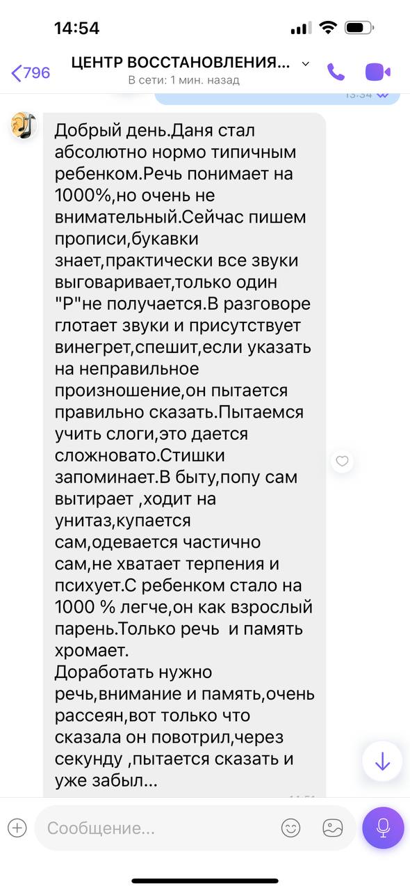 КОЛИЧЕСТВО БЛАГОДАРНЫХ ОТЗЫВОВ ОТ РОДИТЕЛЕЙ ПРОСТО ЗАШКАЛИВАЕТ! К нам массово приходят письма, поступают звонки, а также присылаются фотографии деток, которые заговорили. ЭТО ОГРОМНОЕ СЧАСТЬЕ ДЛЯ НАС ВСЕХ!!! И плоды упорной непрекращающейся работы по совершенствованию Программ Высокочастотной Терапии и микрополяризаций по индивидуальным протоколам - нам удалось охватить и самых маленьких (грудничков), и более старших деток (после 7 лет), и даже взрослую аудиторию! Отдельно хочется выразить признательность логопедам и медицинским Центрам, которые сотрудничают с нами. Этот успех достигнут, в том числе, их кропотливым трудом. Часть отзывов от мам, которые дали согласие на их размещение, мы публикуем ниже. Смотрите, читайте и восстанавливайтесь вместе с нами! ВАШ РЕБЕНОК БУДЕТ ГОВОРИТЬ! – и об этом Вам расскажут ниже мамы когда-то неговорящих детей. |